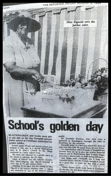 In 1985, Miss Bignold and Steephill celebrated its Golden Jubilee. Mr Gerald Cramp, whose children Edwina and Jane attended the school in the 1980’s and whose wife was a nursery assistant, teaching the ‘Tinies’ as the little ones were called, reported it was: